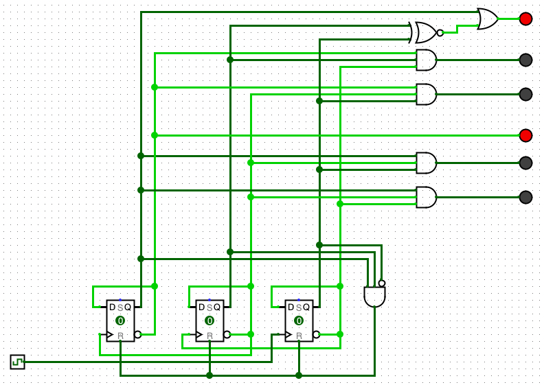 | S2 | S1 | S0 | NS red | NS yellow | NS green | EW red | EW yellow | EW green |