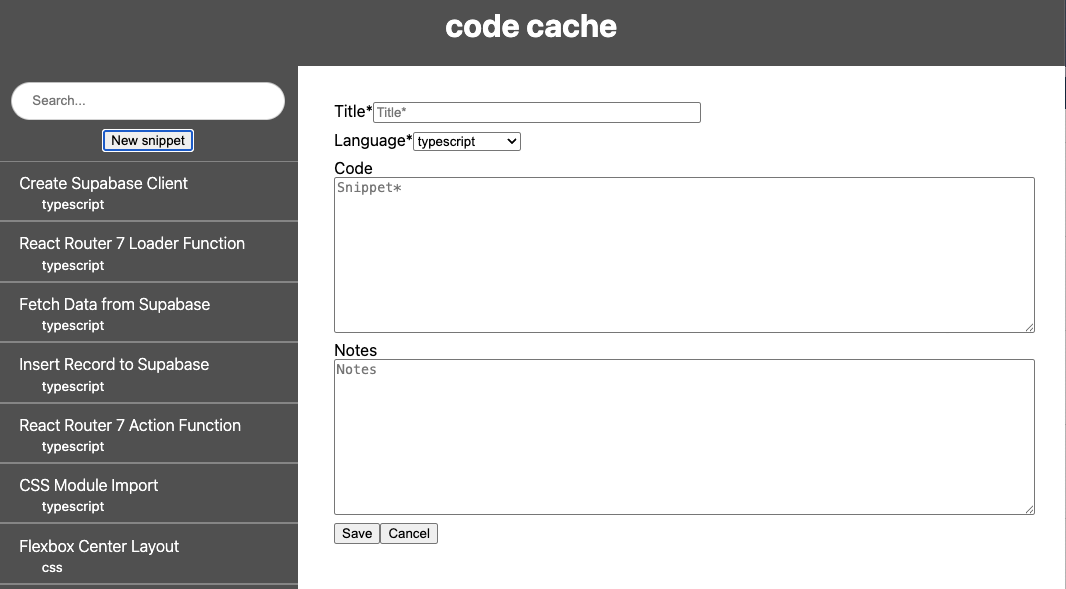 This assignment mirrors the Supabase practical in which you converted the Vermont Hikes site to use a database for data persistence. You will be transitioning Code Cache over to server-maintained data management and adding the facility to add data to the application. Specifically, you will be adding the ability to add new snippets and to edit existing ones. As such, you should complete the practical before starting this assignment.