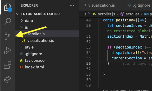 I recommend opening directories in VSCode rather than individual files (this will happen if you clone from the Source Control panel). If you do that, you will get a list of the files in the project in a sidebar. The files will be colored by state. The colors will vary based on your theme, but you will see new files, edited files, files that won’t be seen by git, and if you are running a linter code with errors.