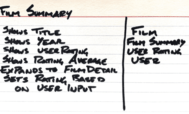 To provide you with an example, imagine that we were going to add individualized film ratings to FilmExplorer. In other words, instead of the current rating system where any user can change the rating on any film, we will individualize the ratings to be per user. Conceptually the user could then see their rating, as well as the aggregate of the ratings made by others as well.