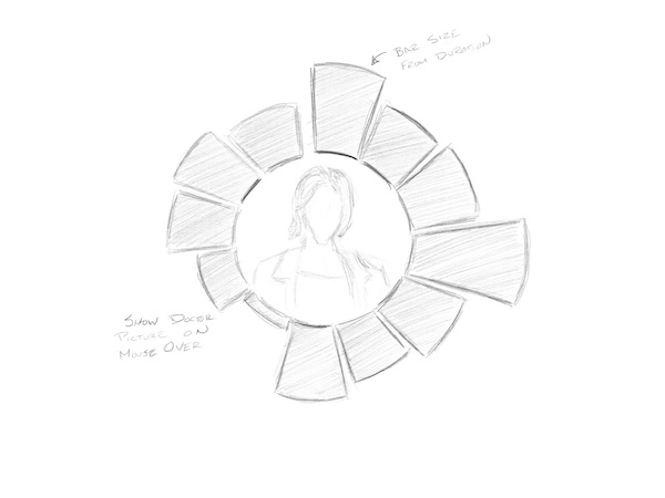 The radial bar chart is interesting looking, but we aren’t done – there is no way to tell which Doctor is which. We are going to add some event handling, use “mouseover” to tell us which Doctor is which.